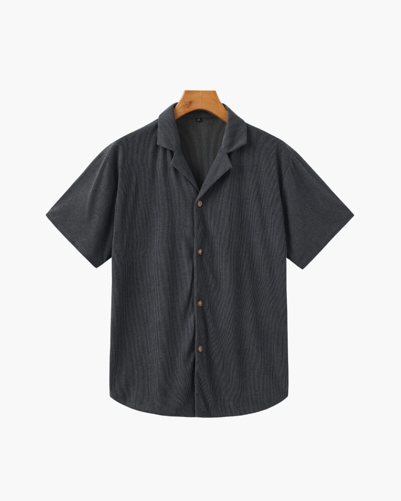 - Relaxed-fit button-up shirt with an open collar for casual elegance